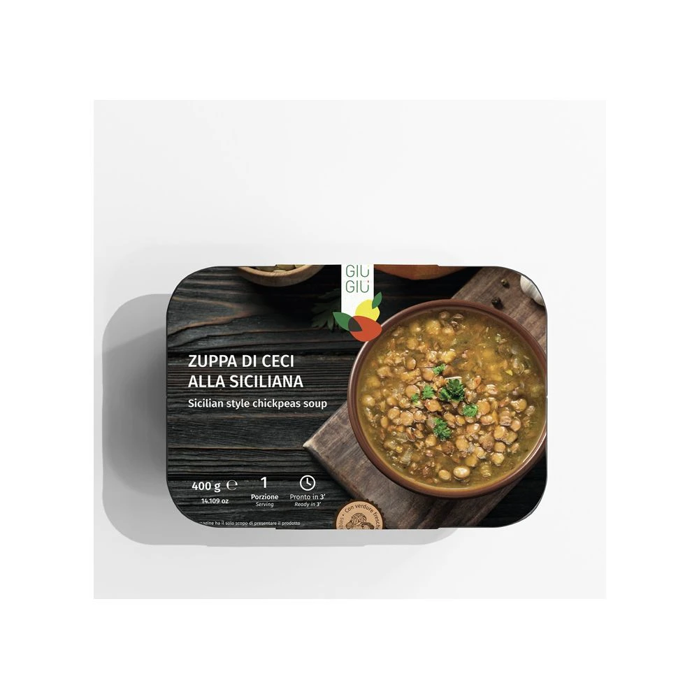 | Ingredienti | Acqua, ceci secchi 23,7%, carote, sedano, pomodori pelati, cipolla, sale, prezzemolo, olio extra vergine d’oliva. Può contenere frutta a guscio, cereali contenenti glutine, soia, lupini, sesamo | ||||||||||||||||||